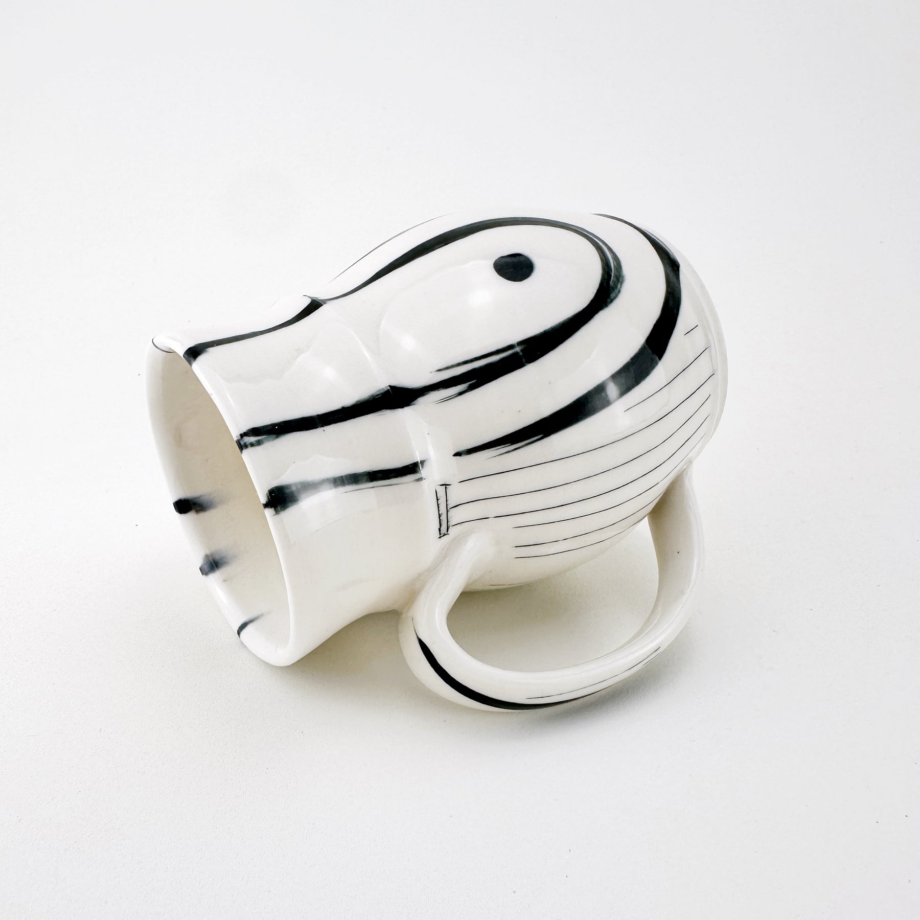 Transform your coffee or tea ritual with this unique, wheel thrown porcelain mug. Crafted & decorated with care, this mug is durable and food, dishwasher, and microwaveable safe. Enjoy a truly authentic drinking experience with this beautiful, one-of-a-kind mug!